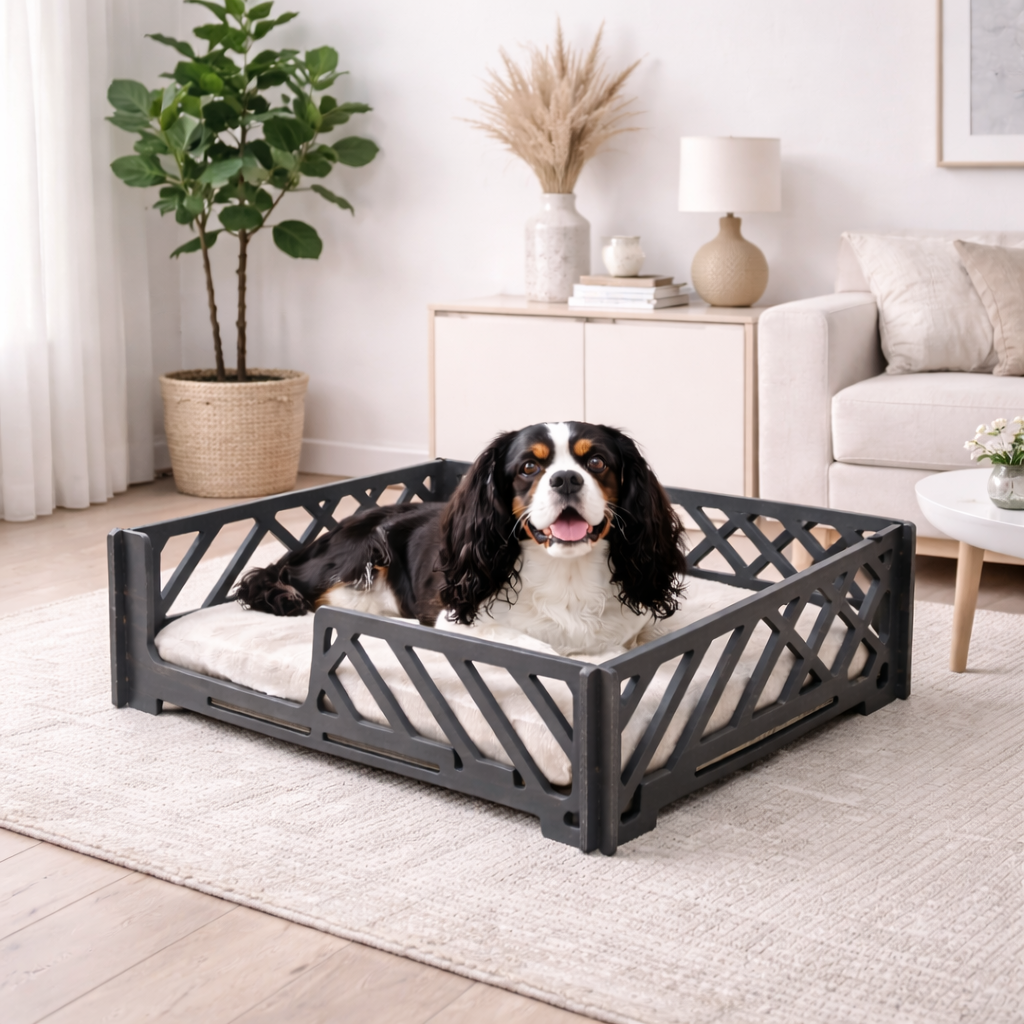 Низкая конструкция обеспечивает удобный доступ для питомца — лежанка подходит для собак мелких и средних пород, а также для кошек. Внутрь можно добавить мягкую подушку или матрас для дополнительного комфорта.