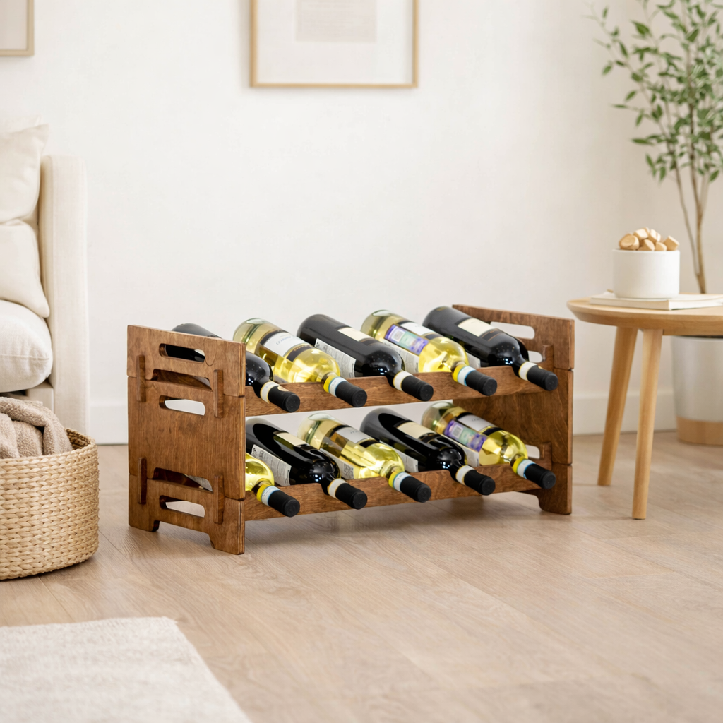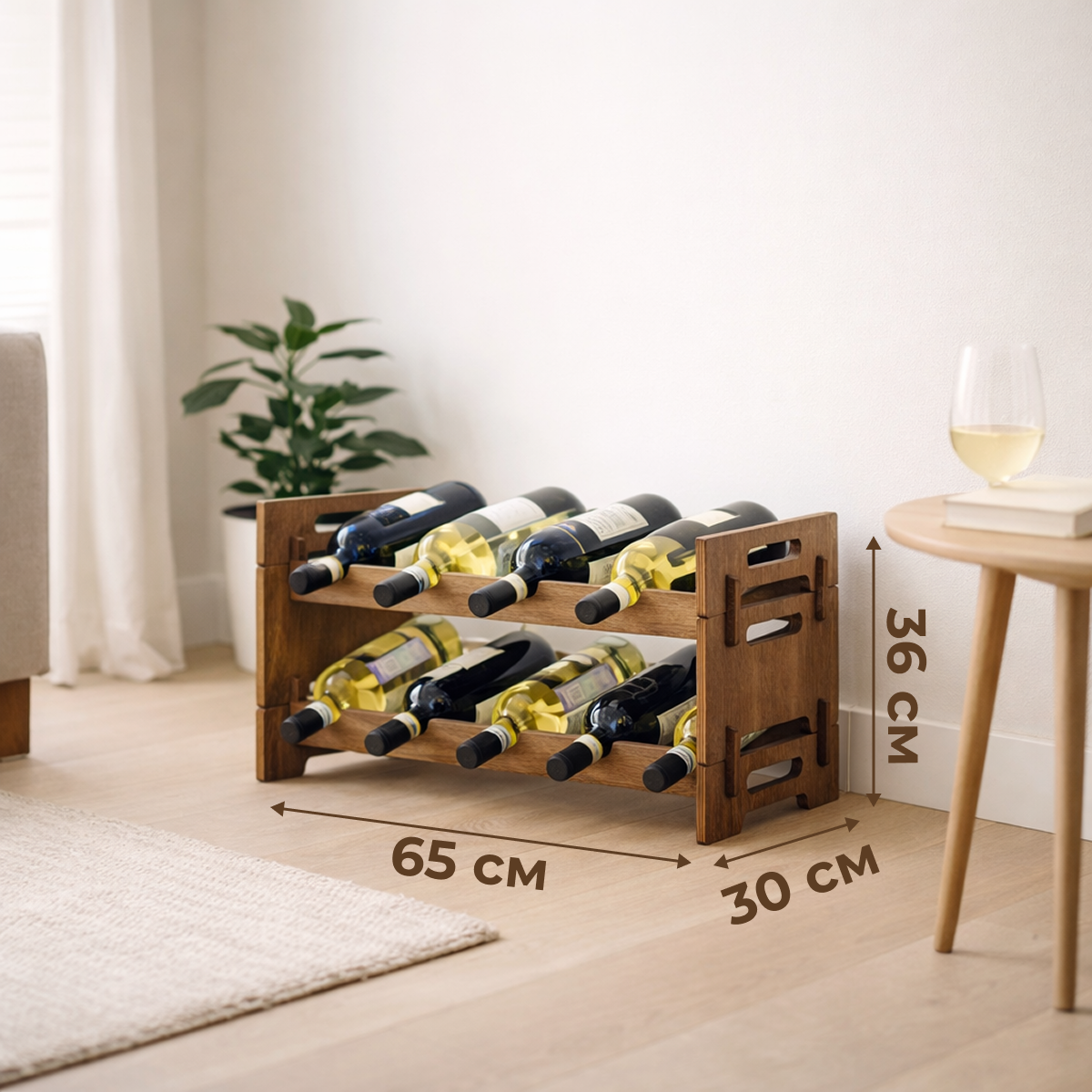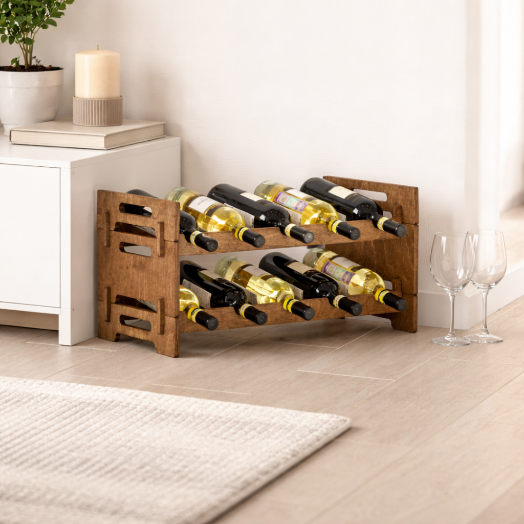 Компактный винный стеллаж, идеально подходящий для аккуратного хранения небольшой коллекции вина. Рассчитан на 10 бутылок вина и шампанского и станет удобным решением для кухни, гостиной, обеденной зоны или домашнего бара.
