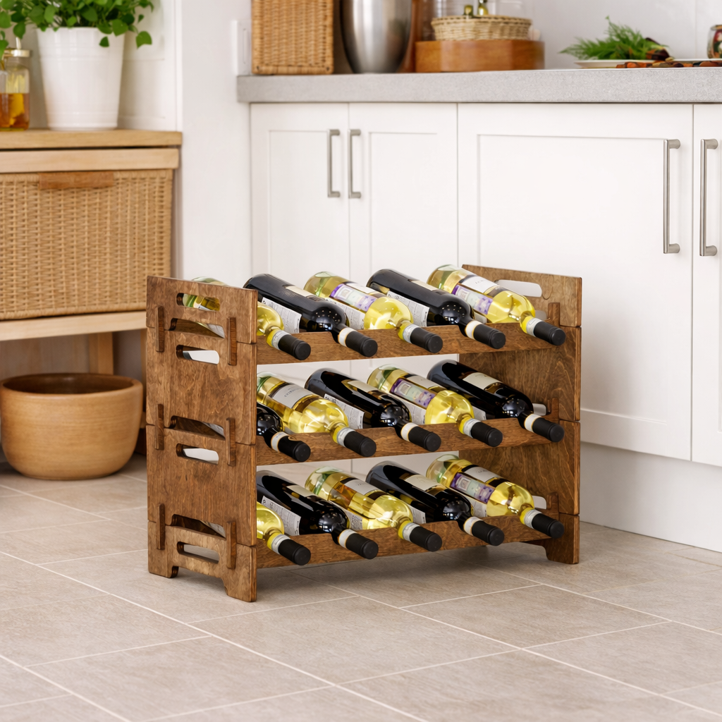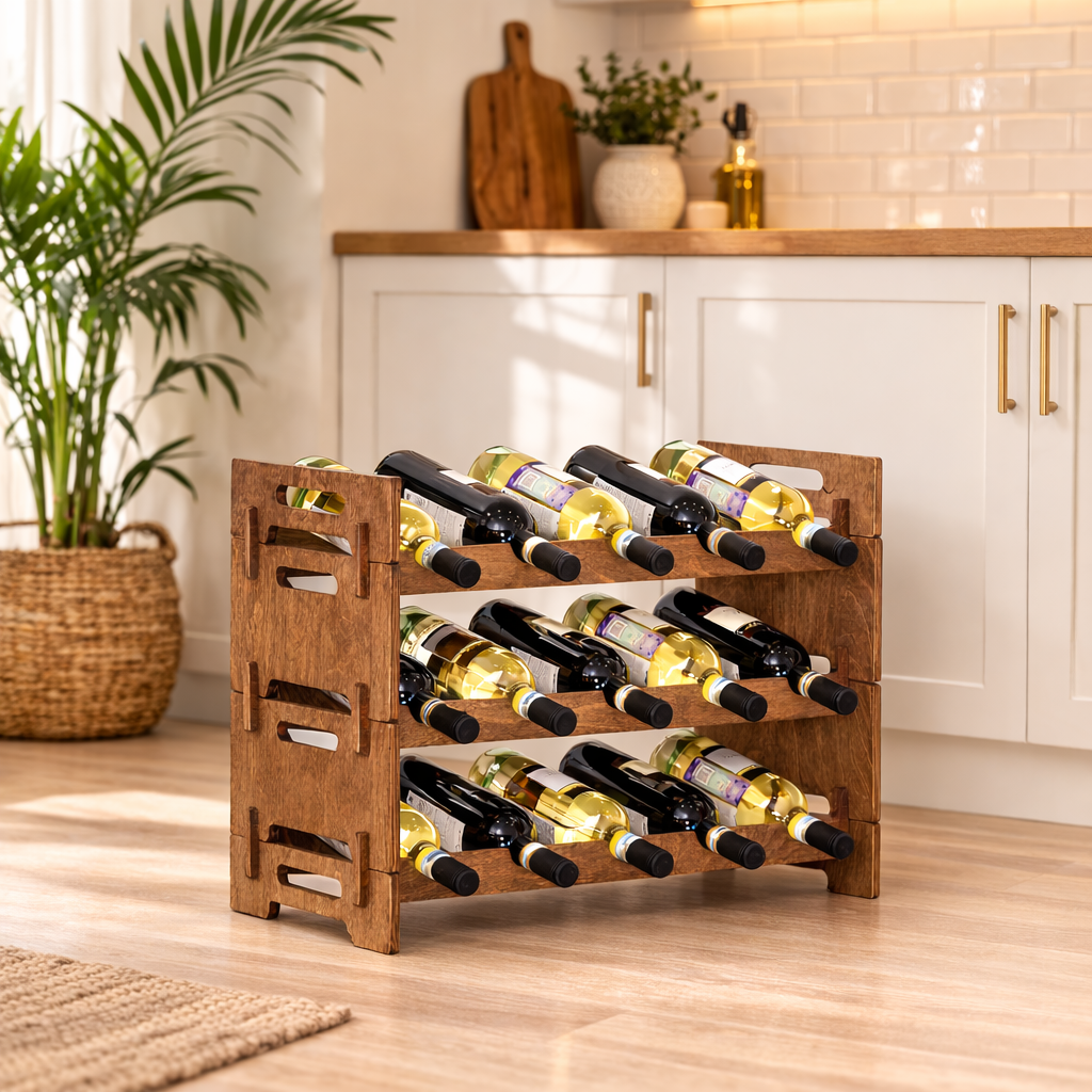 Стеллаж сочетает удобство, надёжность и визуальную гармонию, делая хранение вина практичным и эстетически приятным.