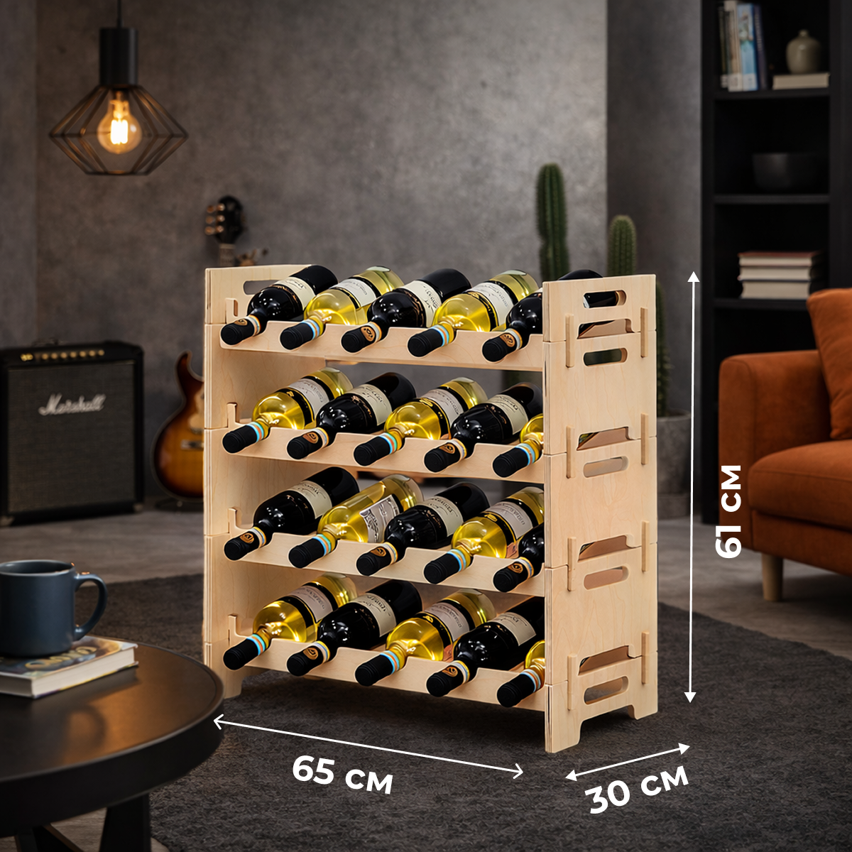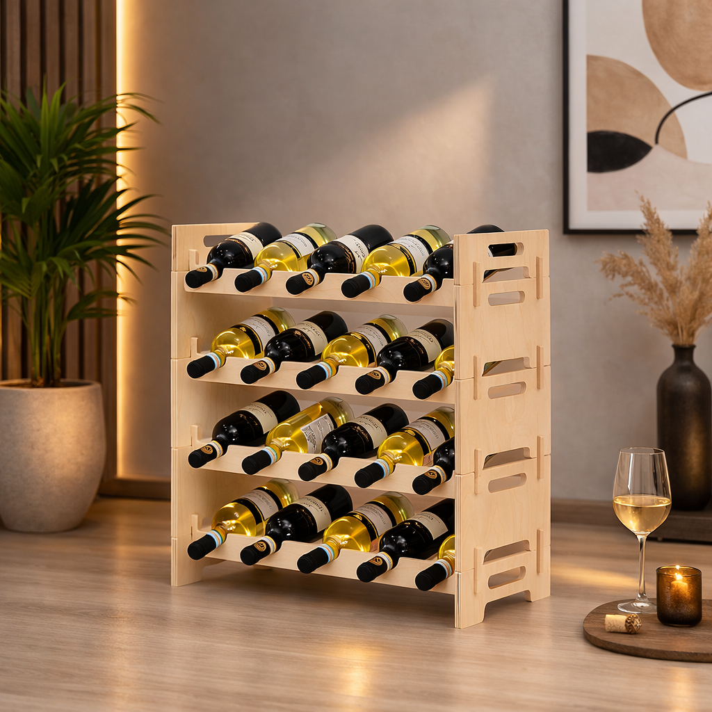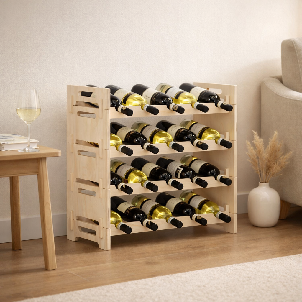 Это изделие сочетает устойчивость, вместительность и натуральную красоту, позволяя аккуратно разместить коллекцию вина дома, в гостиной или на кухне.