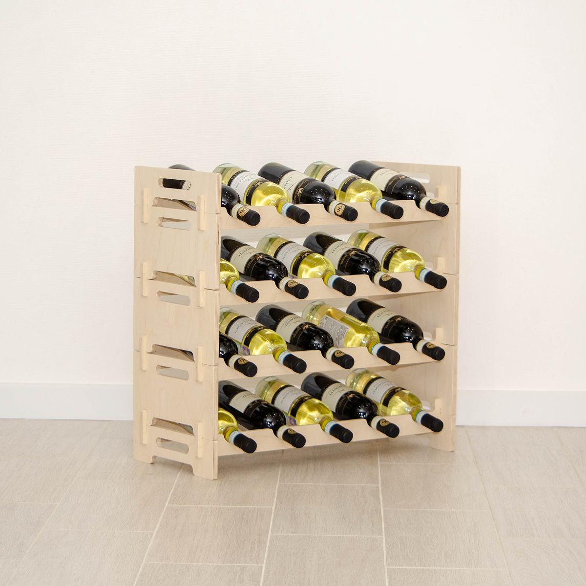 Бутылки располагаются под небольшим наклоном, что обеспечивает правильное хранение и постоянное омывание пробки вином, сохраняя напиток свежим и ароматным.