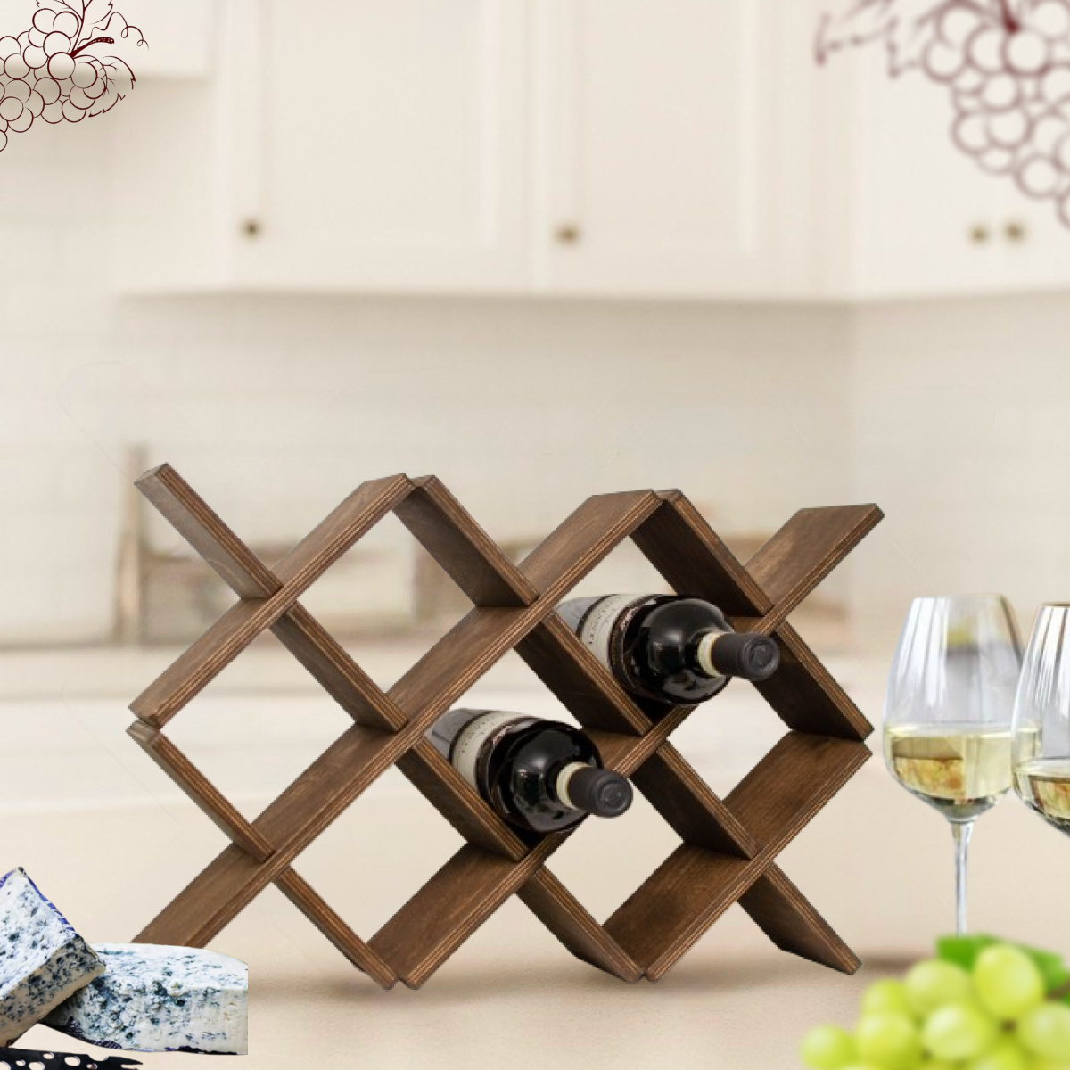 Эта подставка создана для красивого и правильного хранения вина. Натуральная фанера с выразительной древесной текстурой обработана колерованным маслом — покрытие подчёркивает природную красоту дерева и одновременно защищает изделие от влаги и повседневных загрязнений. Подставка вмещает 10 бутылок вина, удерживая их в горизонтальном положении, что особенно важно для сохранения вкуса и качества напитка. Продуманная конструкция обеспечивает устойчивость и надёжность, а лаконичный дизайн делает изделие универсальным элементом интерьера. Подставка гармонично впишется в кухню, гостиную, барную зону или винный уголок, станет стильным акцентом и удобным решением для хранения домашней коллекции вина.